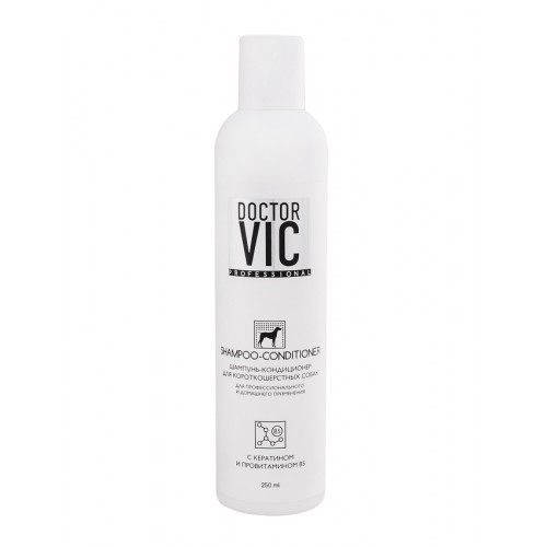 Шампунь-кондиционер Doctor VIC с кератином и провитамином В5 для короткошерстных собак.