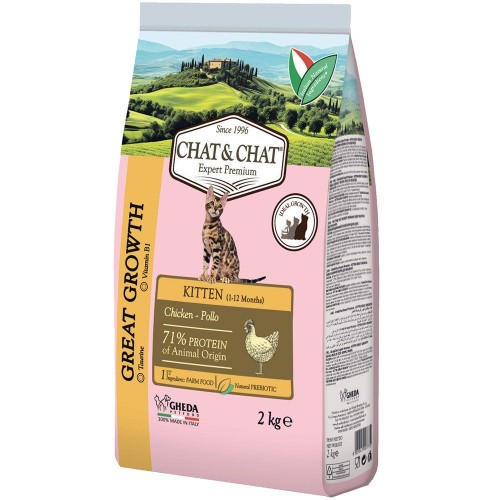 Chat&Chat Expert Kitten (Курица) — полнорационный сухой корм для котят до 12 месяцев со вкусом курицы. Сбалансированный полнорационный корм для самых маленьких.
