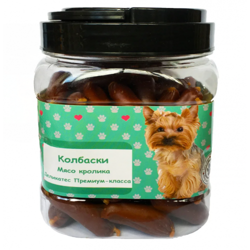 Деликатес премиум-класса «Колбаски» с мясом кролика. Произведено по типу колбас при полном отсутствии специй и с максимальным количеством натуральных ингредиентов: мясом кролика, перемолотыми субпродуктами, которые набиты в баранью кишку для придания деликатесу изысканного аромата.